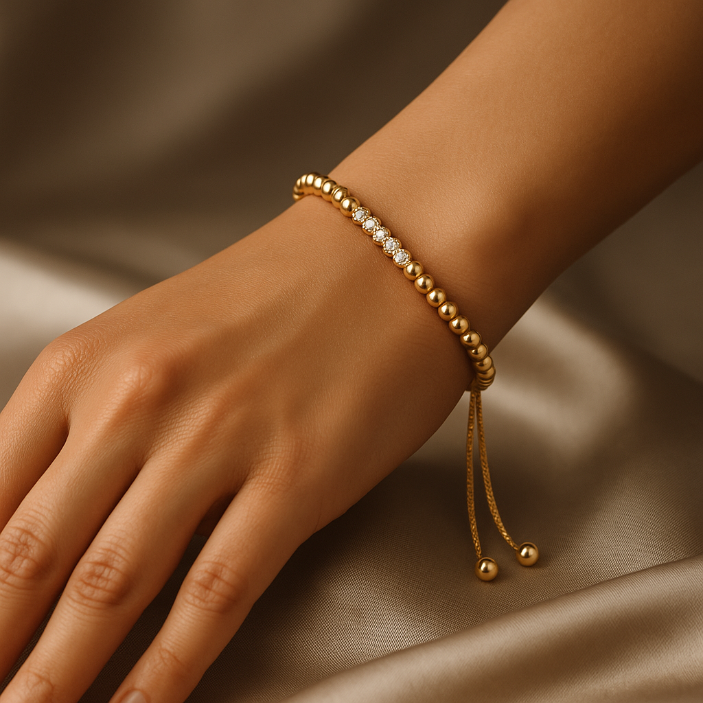 18K Gold Filled Adjustable Box Chain Bracelet With Clear and Multicolor CZ Stones And A Sea Shell Charm (I141)